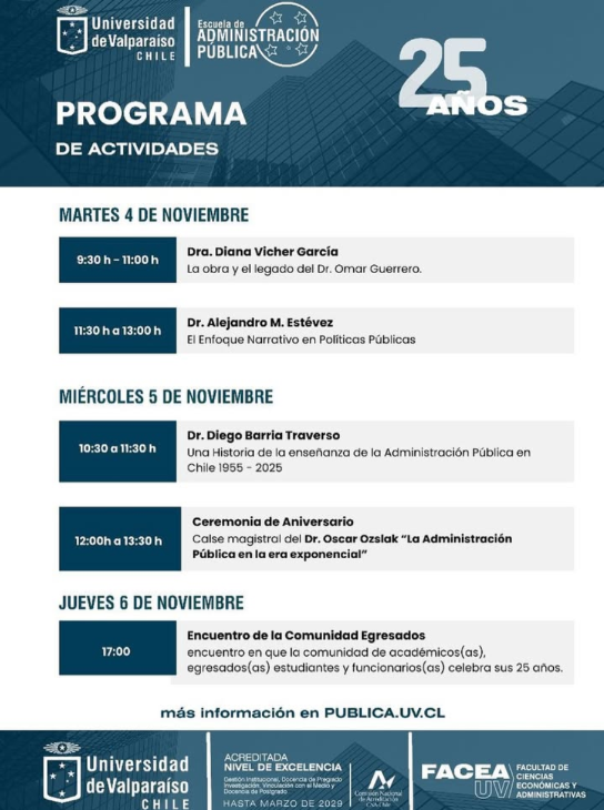 La Escuela de Administración Pública de la Universidad de Valparaíso te invita a ser parte de las actividades conmemorativas de nuestro aniversario.